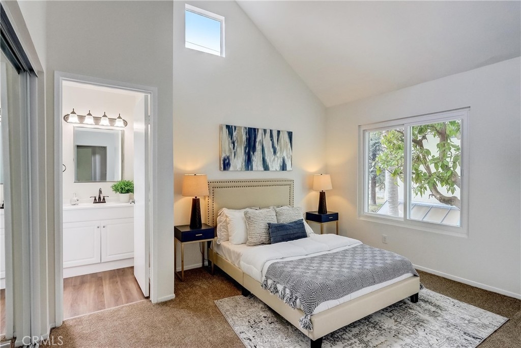 Lovely updated 2 bedroom 2.5 bath condo in a fantastic location. Just minutes to the Forum and LAX. As you enter the picturesque, winding grounds, you'll find a sparkling, and inviting pool. Leading into the condo you’ll find a comfortable living room offering high ceilings and a cozy fireplace. You will also enjoy the convenient sliding glass door which leads outside to the patio and a half bath. Next, you'll find a nice-size dining room that offers an adjacent kitchen updated with Stainless Steel appliances, Quartz countertops, and white Shaker cabinets. The laundry hookups are conveniently located inside the closet downstairs. Upstairs you'll find 2 large primary suites. There is a patio in one of the bedrooms and both have full-size baths. There is new carpet throughout the upstairs, and downstairs you will enjoy LVP flooring. This home has 2 tandem spots for parking. Put this on your list as it won't last long!