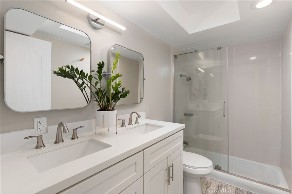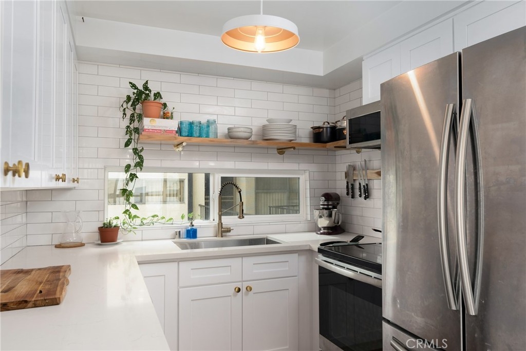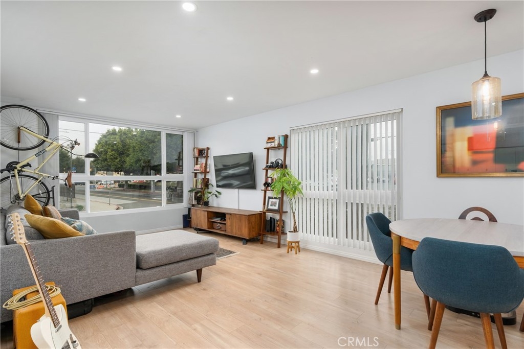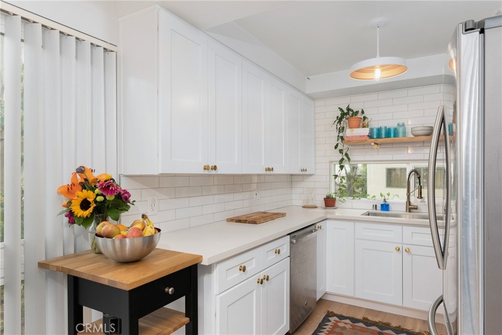 Don't miss this absolutely stunning completely upgraded end unit condo in the booming City of Inglewood! Walk into a newly modern executive feel of this open concept 2 bedroom, 2 bathroom gem. The brand new features include: wood vinyl floors from entryway into living room and bedrooms, brand new double pane windows, ceramic tiles in the bathrooms, quartz counter tops in the kitchen and bathrooms, brand new kitchen cabinets and open shelving, new appliances, recessed lighting throughout, interior whole unit painting, new bathroom light fixtures, new electrical panel, and it is plumbed for an in-unit washer and dryer! This stunning unit exudes pride of ownership!! HOA offers a swimming pool area for residents, laundry in the building, and underground parking. Ideal and convenient location with easy access to 405 freeway, SoFi Stadium, YouTube Theatre, The Great Western Forum, the new arena for the Clippers, public parks, shopping mall, LAX airport, and Dockweiler Beach