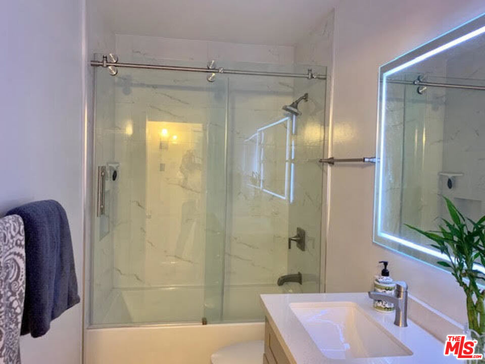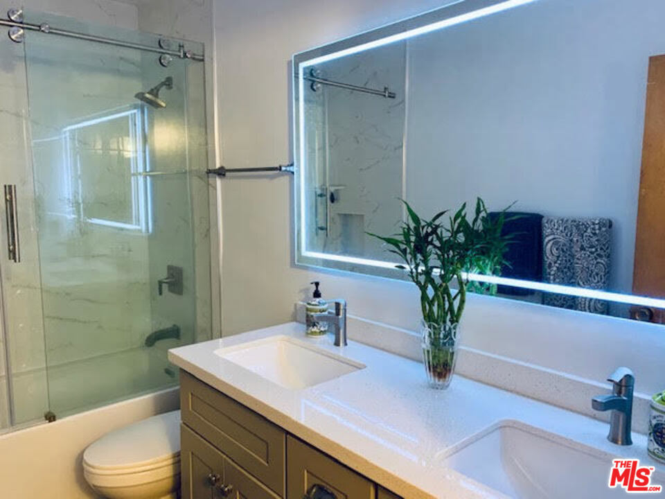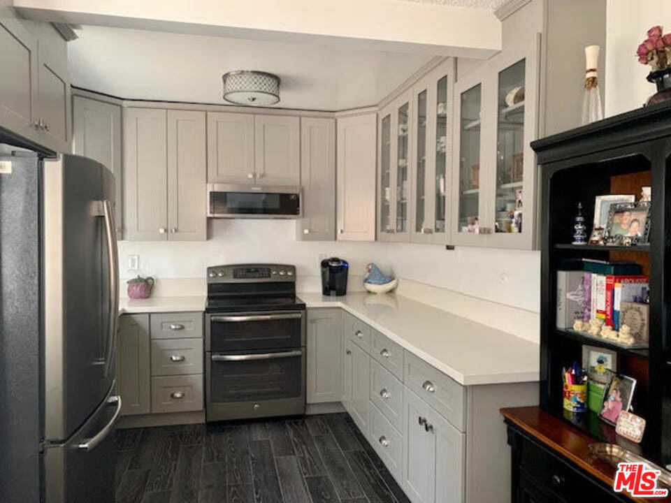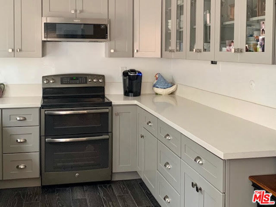 This Remodeled condo is the one you have been waiting for. Light and bright quite rear location. Enjoy the living space that opens to sliders out to the oversize private patio perfect for entertaining. Stylish eat in kitchen includes S/S Farmhouse style sink, Gray Maple Glass front cabinets, Quartz counter tops, GE designer Dual Oven stove & French door refrigerator. Gorgeous spa like bath with dual sinks, modern back lit Mirror, and New tub shower. The Large Bedroom has Mirrored closet doors for plenty of storage. All the right upgrades have been done including adding A Lennox A/C & heat System. The Small Gated complex includes outdoor pool and a subterranean gated parking space. Great location, walking distance to restaurants and minutes from Culver City, Playa Vista. Easy access to the new SoFi stadium complex.