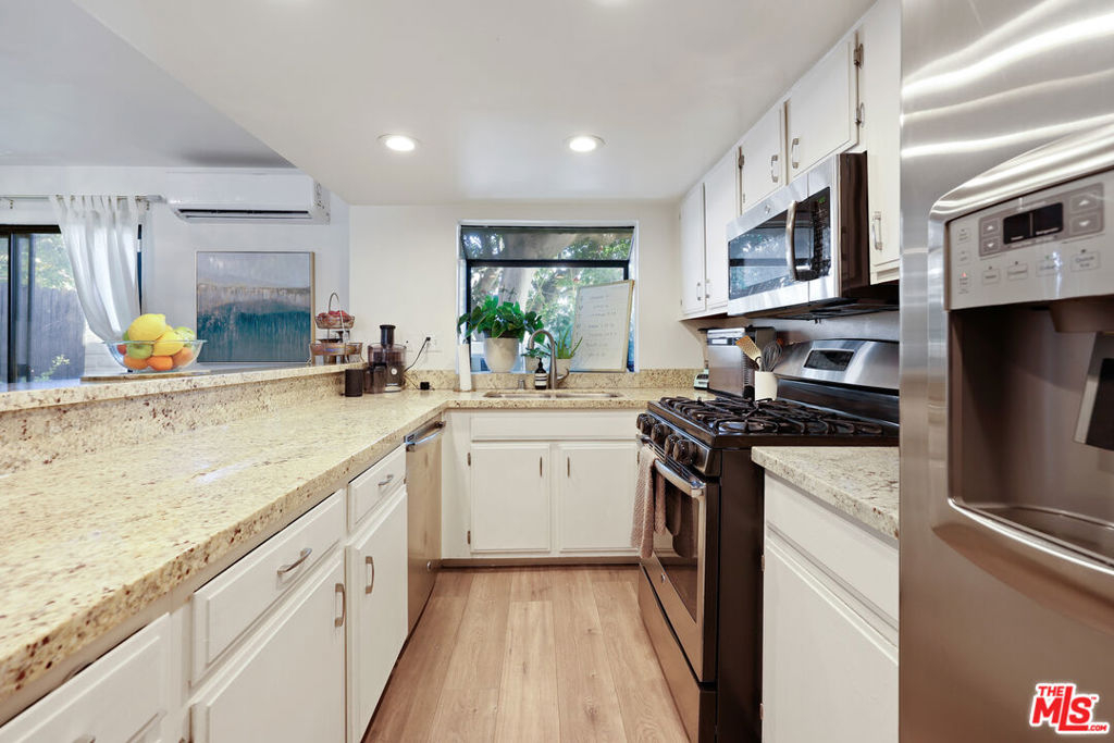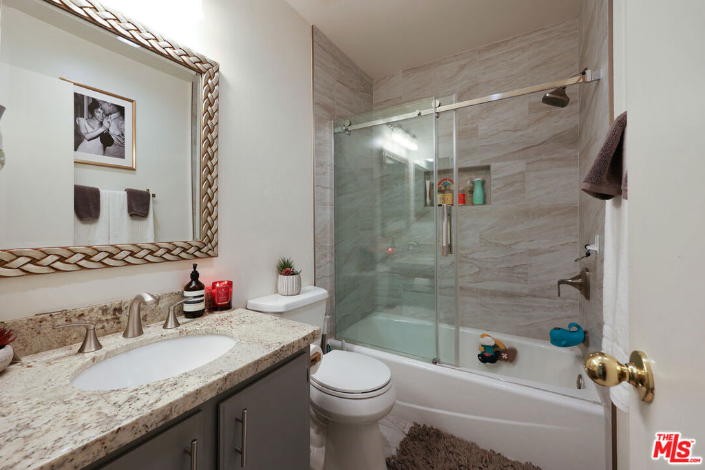 Welcome home to this gorgeous light and bright 2 Bed/2 Bath two-story town-home! Newly renovated and with open concept floorplan, this home boasts beautiful vaulted ceilings, granite counter tops and wood-like flooring throughout. As you walk in the home, you step into a spacious high ceiling living room - perfect for entertainment. The generously sized kitchen with stainless steel appliances and granite bar counter top flows into a dining area which opens to a spacious private patio and a small outdoor garden. The Master bedroom with vaulted ceilings includes an en-suite renovated bathroom with a cast iron tub and top of the line Kohler finishes, two generously sized closets, as well as a balcony. Designated laundry area is conveniently located inside the home. There is additional storage space under the stairs and two storage units above the two side by side parking spots. This unit is in a gated community with a pool, spa & BBQ area. Beautiful and well-maintained Rogers Park is just down the street. Located in one of the most desirable areas of Inglewood with easy access to the 405 Freeway & all parts of LA County. The home is short distance from the brand new Rams/Chargers Stadium, The Forum, LAX Airport, Silicon Beach, Howard Hughes Center and more. OFFER DEADLINE is Sunday, 4/10/22 @ 7pm.