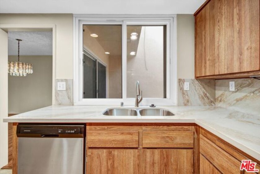 Great opportunity to live in Briarwood a well establised guard gated community. First stepping in, onto a beautiful black marble entryway, above is mirrored ceiling with recess lighting and a frameless clear crystal glass staircase railing. A crystal chandelier creating a stunning focal point in the entryway. This spacious 2 story townhome 3 bedrooms and 3 bathrooms, all bedrooms upstairs. The spacious primary bedroom has high vaulted ceiling and a large walk-in closet. The lower level of the home has a spacious living room with sliding glass doors and exit to an exterior patio off the grass area. Dining room with private enclosed exterior patio that extend any gathering. Kitchen currently has built-in ovens, stove stop, and dishwasher and has been update with beatiful new granite counter. The home has been newly painted throughout and newly installed harwood flooring downstairs. Two car carport and a separate laundry room off entry. Community offers beautiful landscaping, pools and club house. Great proxiimity to SoFi Stadium, Hollywood Park Casino, Intuit Dome, Kia Formum and shopping. Public transportation and Lax.