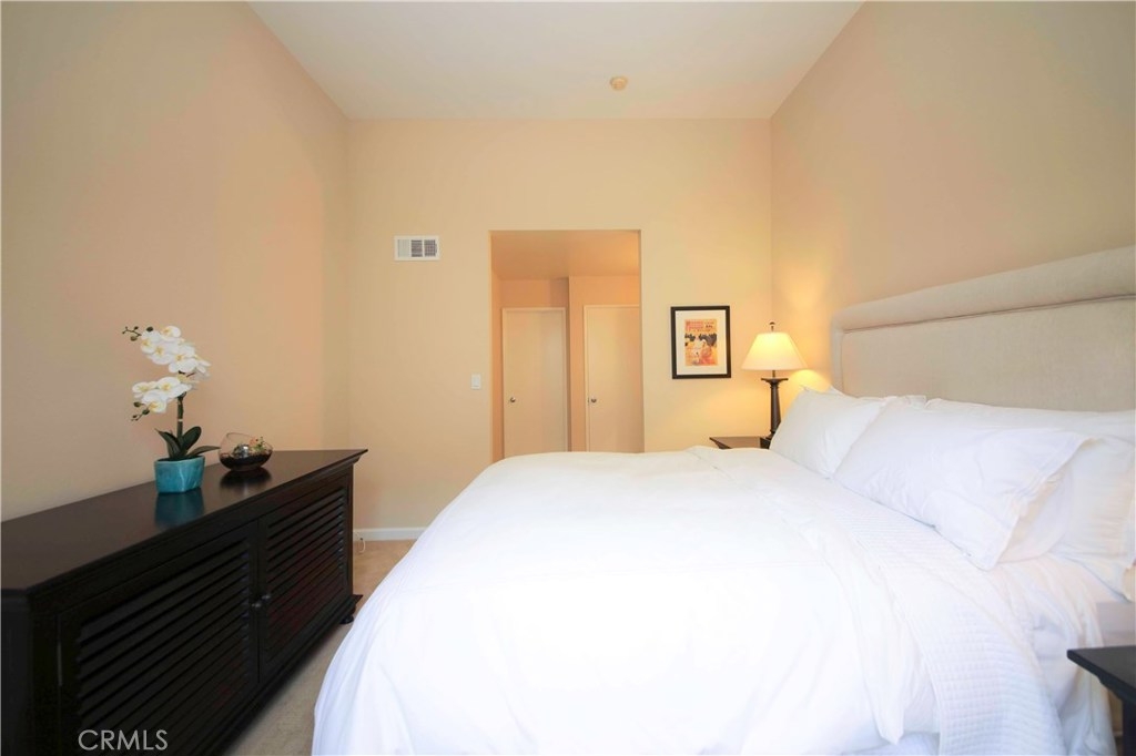 GREAT CONDO-TOWNHOUSE STYLE WITH TWO MASTER SUITES AND A LARGE LOFT! The loft can be used as a 3rd bedroom or an office. This spacious home is in a great location and in excellent condition. It’s located approximately two blocks from downtown Inglewood and three blocks from The Foreum and new Rams Stadium. The impressive high ceilings give it a luxury feel and it’s great for entertaining. New plantation shutters, two patios and laundry inside. The refrigerator, washer and dryer are included. Central A/C and heat. Gated community with guard and controlled access, two pools, spa and low HOA. Sound retrofit was recently completed by the City on doors and windows. Conveniently located across the street from Vons, Starbucks, near transportation, lax and 405 freeway.