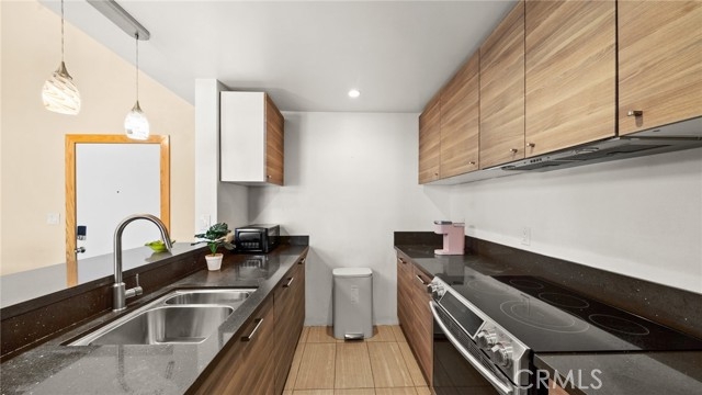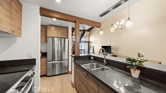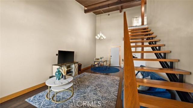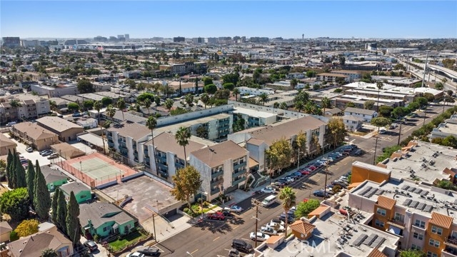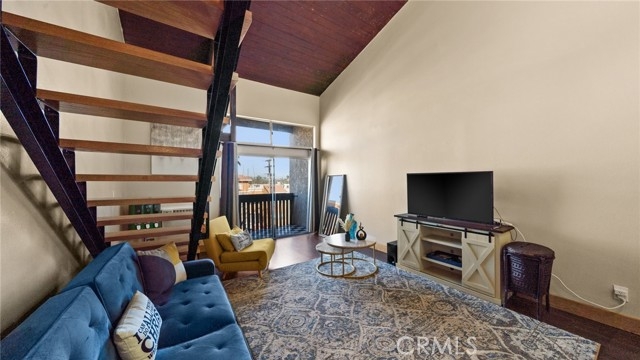 BACK ON THE MARKET!! This beautiful end unit condo welcomes you with 30 foot cathedral beamed ceilings, hardwood floors and porcelain tile throughout the first level. The galley kitchen boasts quartz countertops, stainless steel appliances and breakfast bar seating. Enjoy a balcony off the first floor, complete with storage. The primary bathroom includes a walk-in shower with bench seating, while the loft bathroom has a tub/shower combination. Amenities include 2 assigned parking spaces, guest parking, plentiful street parking, swimming pool, spa/hot tub, sauna, tennis court(s), recreation room, laundry facilities on each floor, and convenient trash chutes. The building offers secure entry and security cameras throughout. Conveniently located near LAX airport, downtown L.A., SoFi Stadium, and Intuit Dome.