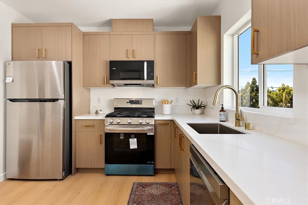 Brand-new construction at 642 E Fairview Blvd offering refined, modern living in the heart of Inglewood. This thoughtfully designed 2-bedroom, 2-bathroom home spans approximately 989 square feet and is one of only three residences on the lot, creating an intimate, boutique-style setting. Privately tucked away at the rear of the property, the home offers a peaceful retreat with an added sense of privacy and security—perfect for those seeking comfort and quiet while still being close to everything. Inside, the open-concept layout is filled with natural light and features a designer kitchen with premium appliances, sleek quartz countertops, and high-end finishes throughout. Spa-inspired bathrooms and well-proportioned living spaces create a warm, inviting atmosphere that truly feels like home. Ideally located near local dining, shopping, and everyday conveniences, with easy access to major freeways. Property is offered as a TIC.