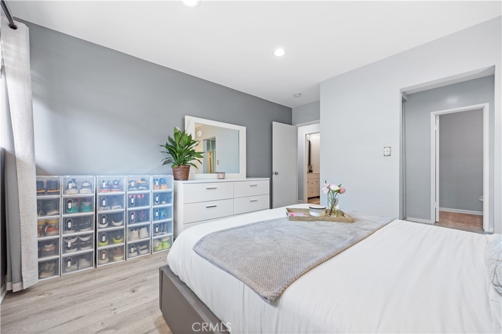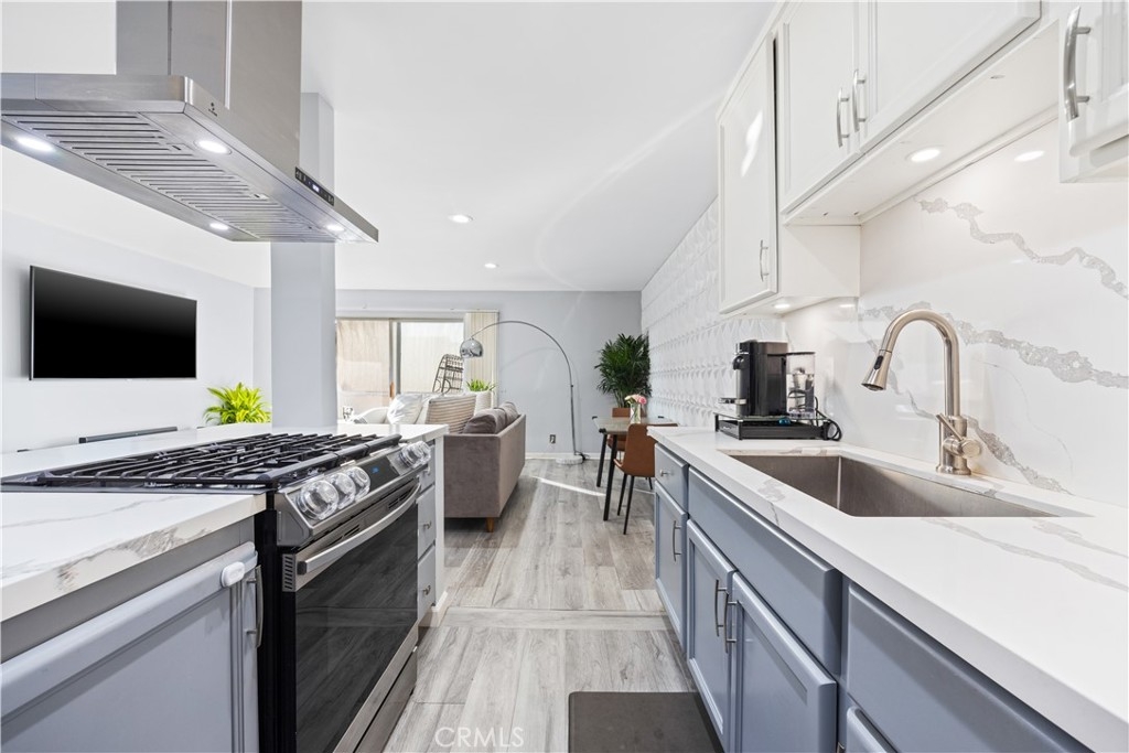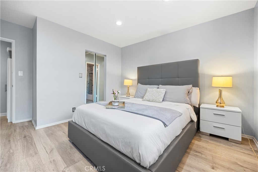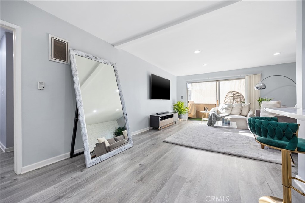 Discover the perfect blend of comfort and convenience in this beautifully updated 2-bedroom, 2-bathroom condo, ideally situated in the heart of North Inglewood just off the 405.This exceptional top-floor unit boasts enhanced privacy and tranquility, allowing you to enjoy serene views of the surrounding area. With no upstairs neighbors, you’ll experience a peaceful living environment that is hard to find in urban settings. The open layout maximizes space and light, complemented by large windows that let in an abundance of natural sunlight. Step into a spacious, open floor plan that features a bright living room with a large sliding door, allowing plenty of natural light to create a warm and inviting atmosphere. Sliding glass doors extend the living room to balcony for outdoor enjoyment, ensuring abundant lighting throughout the day. The modern kitchen is a chef's dream, complete with under-cabinet lighting, stainless steel appliances, quartz countertops, and ample cabinet space. Every detail has been meticulously thought through and executed for your enjoyment. Retreat to the serene master bedroom, which boasts a generous closet and an en-suite bathroom with a stylish vanity featuring underlighting and updated fixtures. The second bedroom offers equal spaciousness, perfect for guests or a home office. Both bathrooms have been gorgeously upgraded with contemporary finishes, providing a luxurious experience. Enjoy your morning coffee or evening sunset on the private balcony, offering a tranquil outdoor space with views of the LA skyline. The west-facing orientation ensures you can enjoy picturesque sunsets every night. Located just minutes from the new SoFi Stadium, The Forum, LAX, and a variety of dining, shopping, and entertainment options, this condo offers the best of city living in a rapidly growing area. A short 12-minute drive will take you to Manhattan Beach for a change of scenery. This home comes with 2 parking spaces, making it easy to park and walk straight into your community. An elevator adds to the convenience of this lovely condo. Don't miss the opportunity to make this stunning condo your new home. Schedule a showing today and experience all that 855 Victor Ave #321 has to offer!